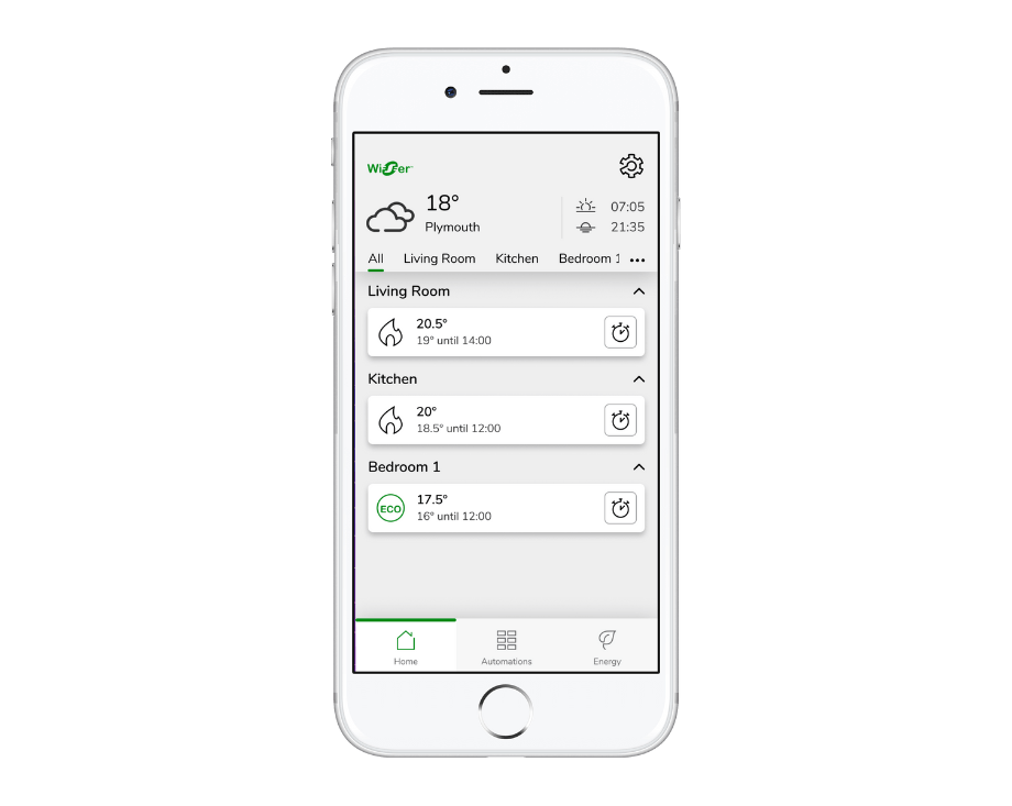 Download The Wiser Home app for your smartphone by searching "Wiser Home" in the iOS App Store or Google Play Store. This will give you 24/7 access to your heating from anywhere in the world.