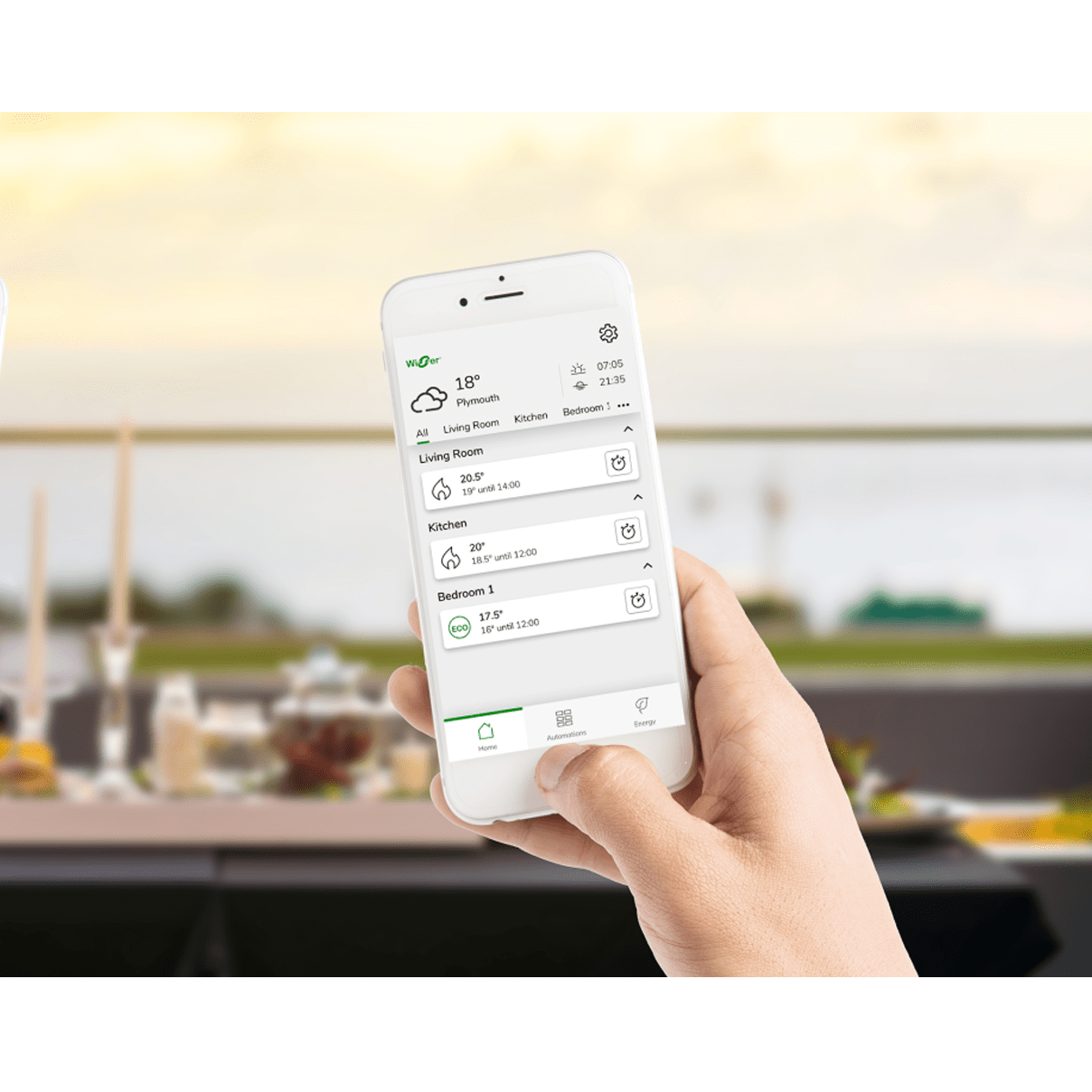 For example, set the scene for your next movie night by creating a customised Moment, which in just one tap can boost the living room by 2°C, and, via Wiser plugs, can turn on power to the TV and turns off the lamps for total home cinema atmosphere.