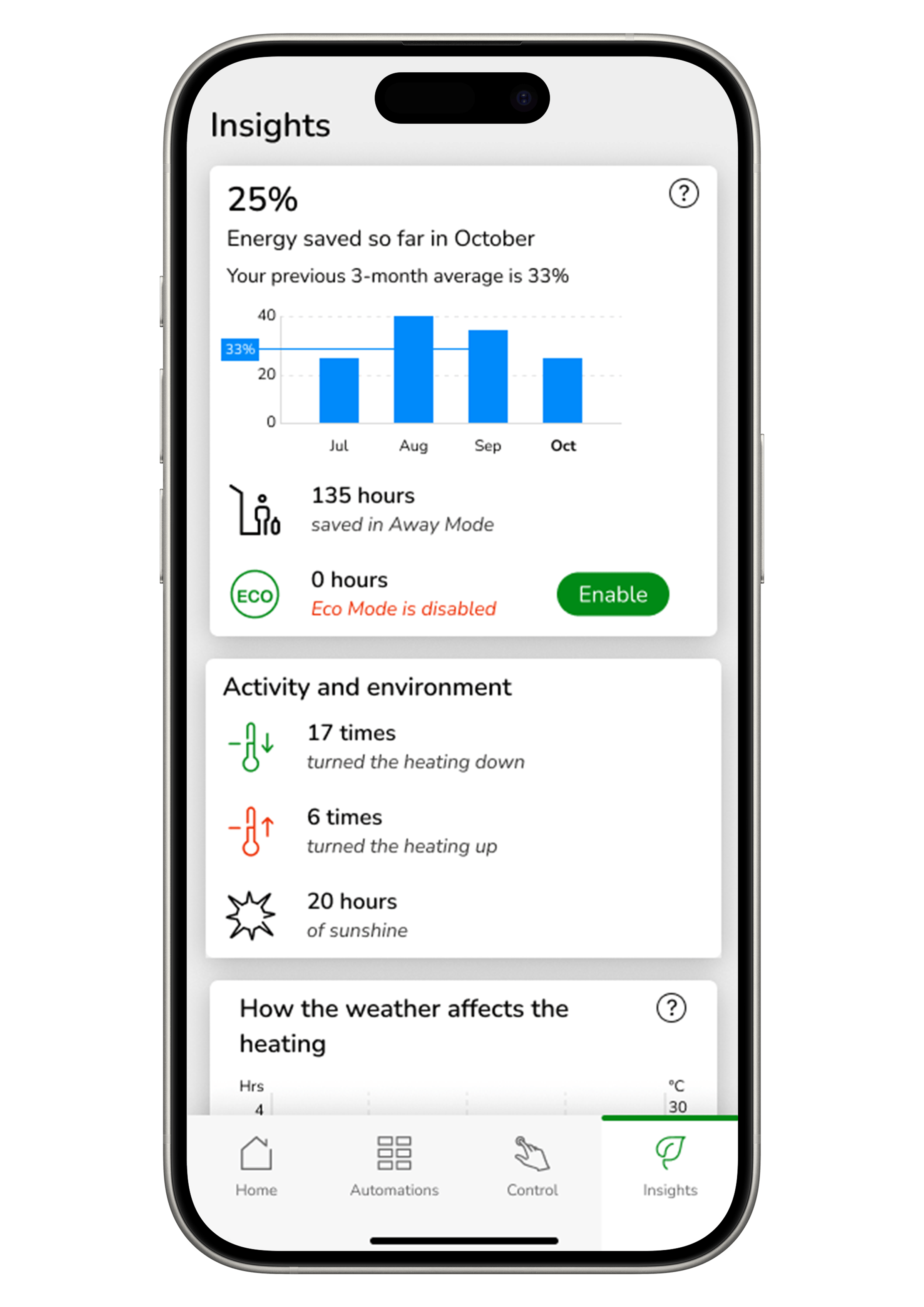 No more worrying about whether your home's really being heated how you want; you can access Wiser's Insights and Heat Report from anywhere via the Wiser Home app and adjust your settings.